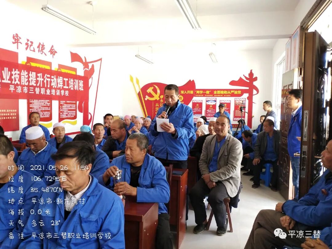 平?jīng)鍪腥媛殬I(yè)培訓(xùn)學(xué)校承擔(dān)平?jīng)鍪嗅轻紖^(qū)2021年上楊回族鄉(xiāng)職業(yè)技能提升行動焊工培訓(xùn)班簡訊